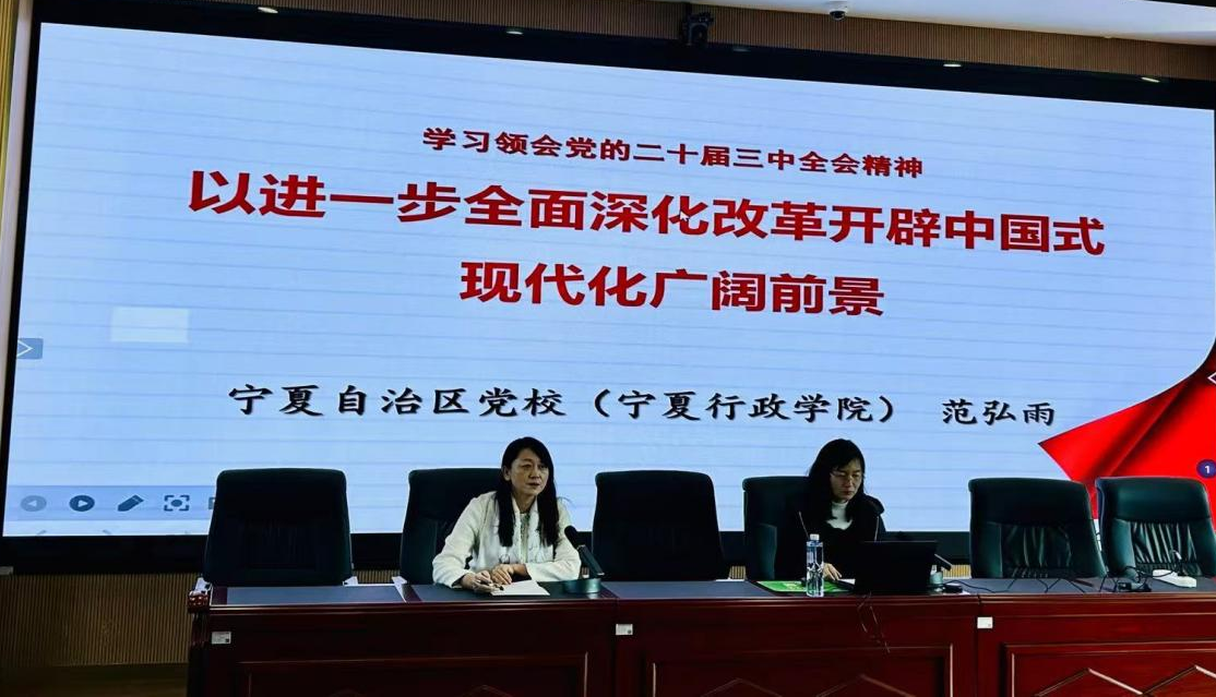 12月4日下午,kk体育 邀请中共宁夏回族自治区党校政治部的范弘雨博士为学院教职工作“学习领会党的二十届三中全会精神”专题辅导。学院全体教职工参加本次讲座,学院党总支书记朱海燕主持讲座。