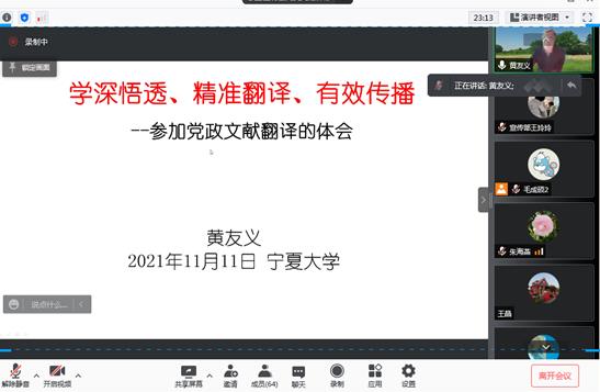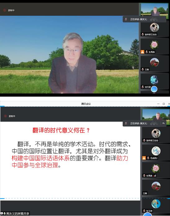 2021年11月11日下午2:15,中国外文局前副局长黄友义老师在kk体育