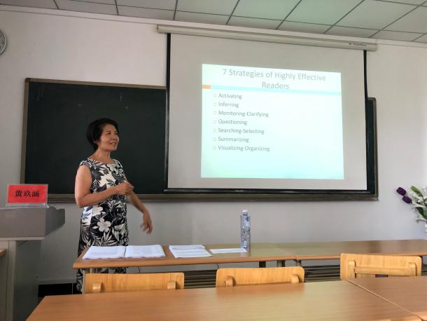开展了一系列英语教学与研究讲座。主讲人是来自美国弗吉尼亚州瑞金大学的黄玖涵副教授。