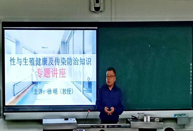 大学生性与生殖健康教育咨询服务中心主任、生命科学学院徐明教授于兰山一教101为新生进行性与生殖健康讲座。