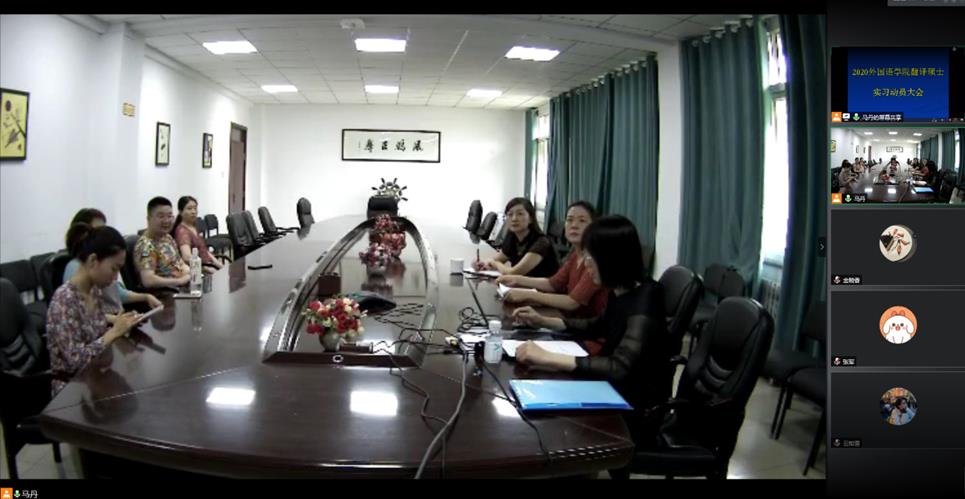 2019级翻译硕士学生实习动员大会于2020年7月16日上午10点通过腾讯会议召开。余洁副书记、朱海燕副院长、学位点负责人谢丽欣老师、全体实习指导教师以及2019级口笔译研究生参加了此次会议。会议由MTI硕士学位点负责人谢丽欣老师主持。