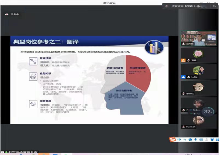 特邀请广东外语外贸大学翻译学研究中心主任、全国翻译专业学位研究所教育指导委员会委员兼秘书长赵军峰教授针对我校翻译硕士培养予以线上指导。赵军峰教授在“腾讯会议”平台以“从‘基石’到‘顶石’翻译人才培养的理念和原则”为题进行线上讲座。kk体育