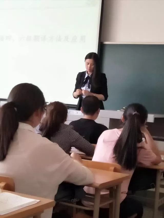 为了更好地在教学实践中考察教师的授课情况,本次公开课活动在课堂内进行。参加公开课活动的老师是2016级任课教师干丽丽、2017级任课教师杨桂芳。公外部全体任课教师跨级别参加听课。5月24日,干丽丽老师在A区1教C306教室,进行了大学英语四六级考试中的翻译方法的公开课教学。干丽丽老师引导学生学习了翻译的基本方法,从语言学角度,强调段落翻译的衔接,并佐以例证,尤其是对于段落翻译中的中国文化特色词语进行知识扩充,帮助学生进行有效地知识框架的构建。5月25日,杨桂芳老师在A区1教D403教室,以《新世纪大学英语》第三册Unit 4 Health为教学内容,进行了公开课教学。杨桂芳老师首先介绍了本堂课的授课内容、课程目标、课程安排,并按照“单词导入→学以致用→听力输入→口语输出”顺序进行的以理解、交流为主导的公开课教学。两位教师教学目标明确,教学重点突出,时间分配合理。课堂教学过程中,学生积极参与,课堂气氛活跃,师生互动良好,教学效果较好。