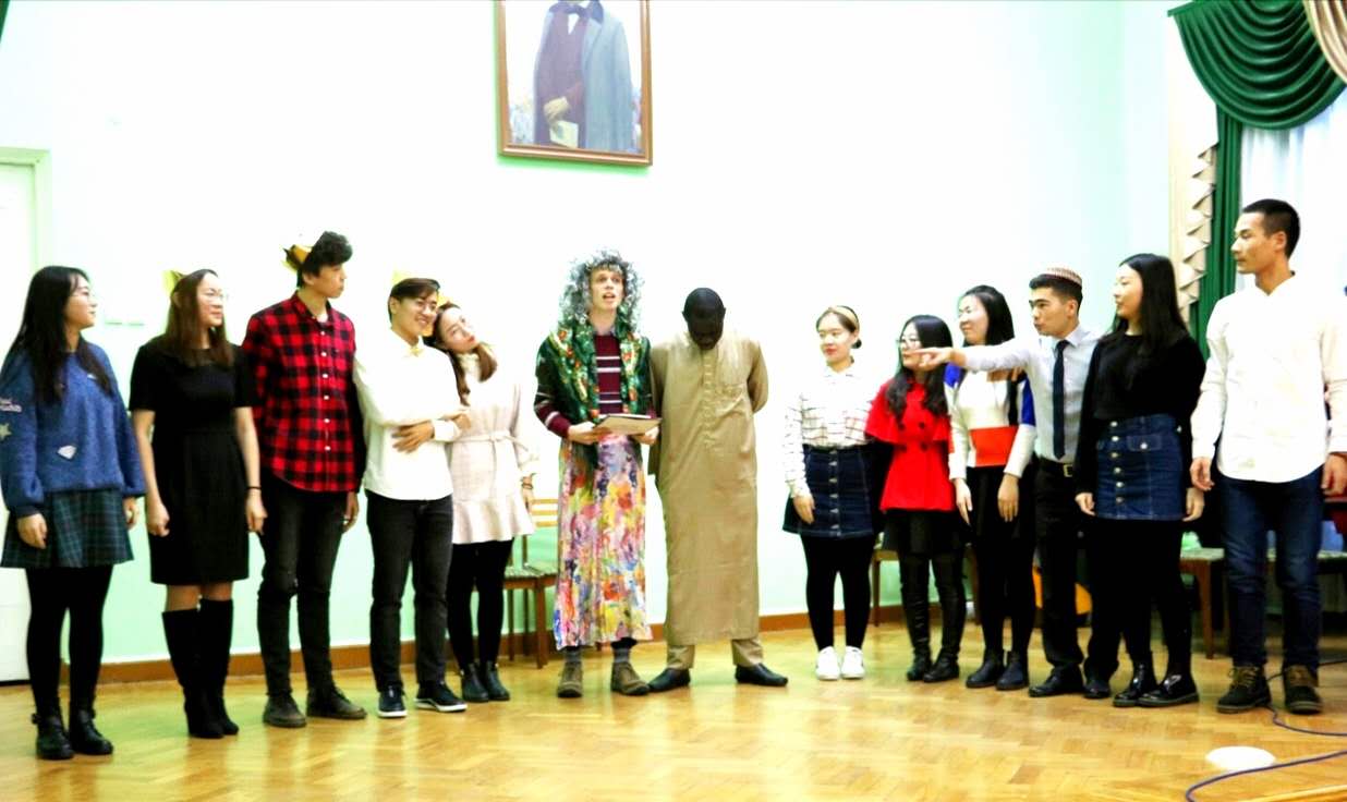 在沃大开展项目评估期间,我校代表团还应邀参加了沃罗涅日大学语言系主办的一年一度的“俄罗斯童话节”活动。这一活动中,俄罗斯的大学生、中小学生、以及各国留学生在同一个舞台上,展示他们精心排演的俄罗斯童话剧。并有多位专家评委现场打分,评选出编排和表演俱佳的演出剧目。“童话节”舞台剧目精彩纷呈,俄罗斯学生和各国留学生风格各异的演出给我校代表团留下深刻印象。最令人欣喜的是,此次“童话节”优秀剧目的评选中,kk体育