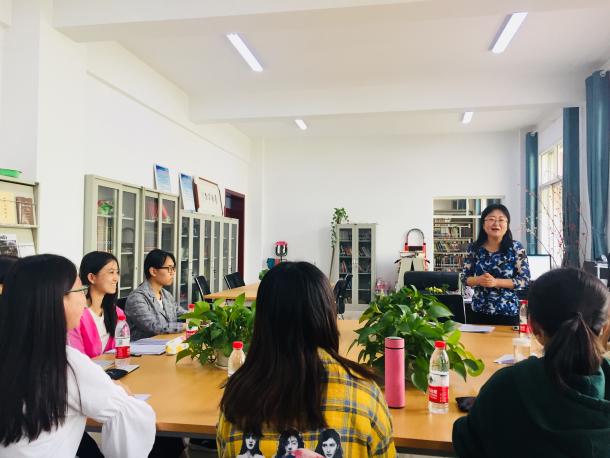 4月23日下午,在学院资料室温馨的环境中,张燕萍老师带领同学们阅读和分析文学作品。大家通过对Sherwood Anderson短篇小说的文本分析和讨论,探讨文本主题、巩固分析技巧、提高学习者对文学作品阅读的敏感度和感受力。在这次活动中,同学们享受了深度阅读分析外国文学作品带给大家的满足和愉悦,感受到文学作品蕴含的魅力,学到了阅读分析作品的技巧。