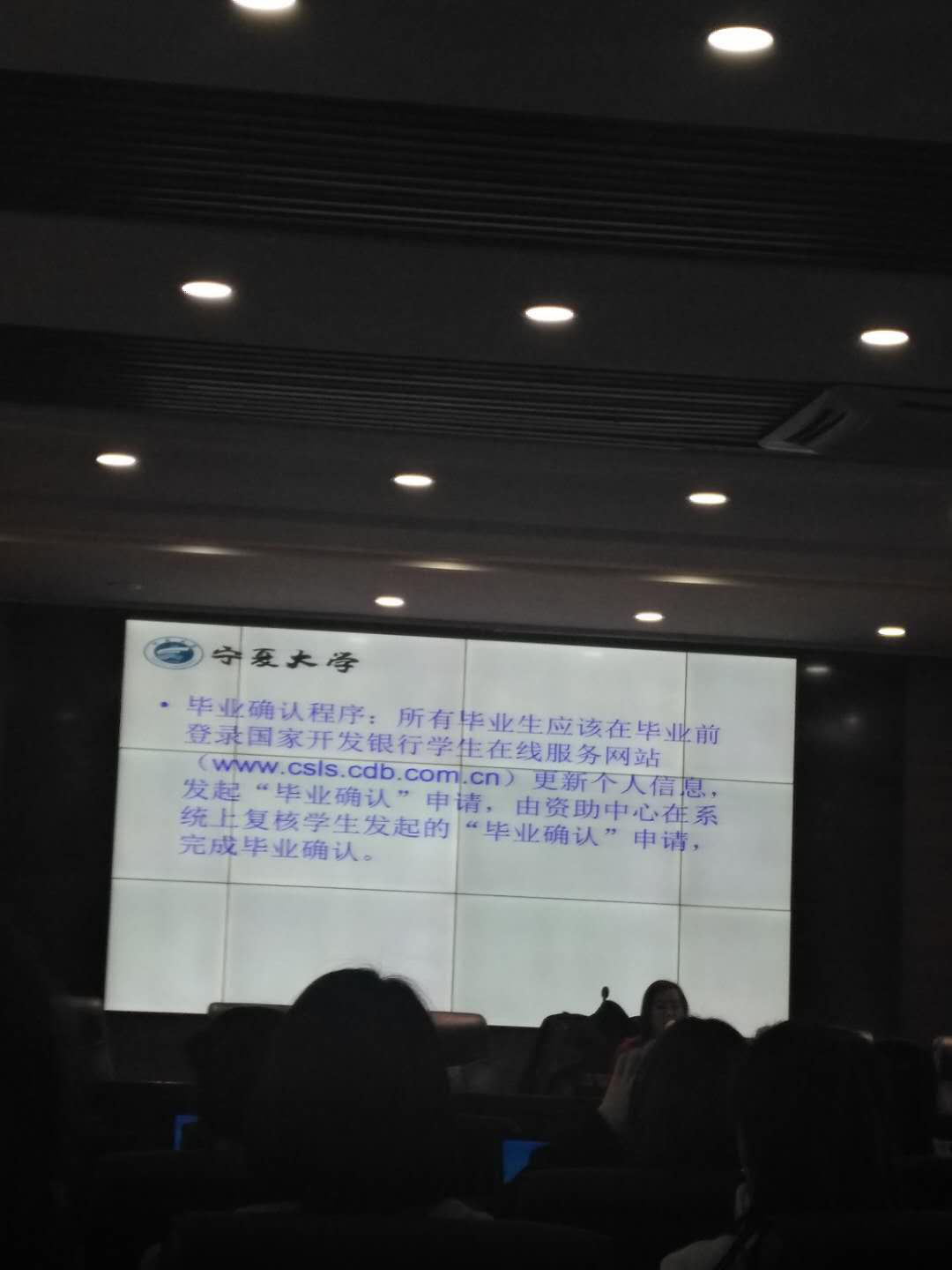 之后,徐洋老师细致地介绍了生源地信用助学贷款毕业确认的时间安排与流程。并且同时耐心为同学们解读了毕业生基层就业助学贷款代偿的相关事宜。