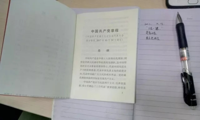 首先,徐洋老师给各位学生党员解读了党的十九大后通过的新党章。并将大会通过的新党章修正案所修改的107处,其中总纲部分修改58处,条文部分修改49处,生动体现了习近平新时代中国特色社会主义思想这一重要内容。通过讲解和说明,学生党员明确了新时代的新要求、新目标。
