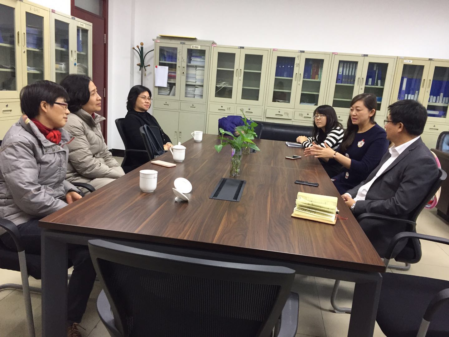 在交流的过程中,双方就大学英语教学改革进行了深入地探讨,宋缨副院长针对我校大学英语课程设置体系提出了宝贵的意见和建议。最后,周震院长诚挚邀请宋缨副院长能够为我校大学英语教学改革给予指导和帮助,希望两院之间能够开展更多的合作和交流,以期进一步提升我校大学英语的教学质量。
