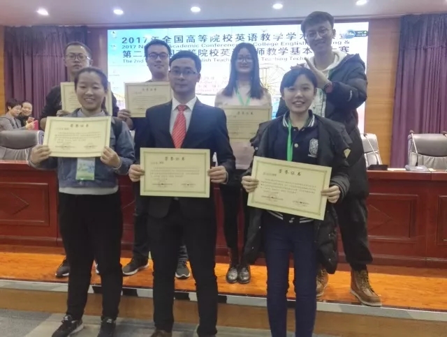 教师田莎、韩芳分别获得英语专业组一等奖及大学英语组二等奖的好成绩,同时田莎老师被组委会授予“最佳教学设计奖”。