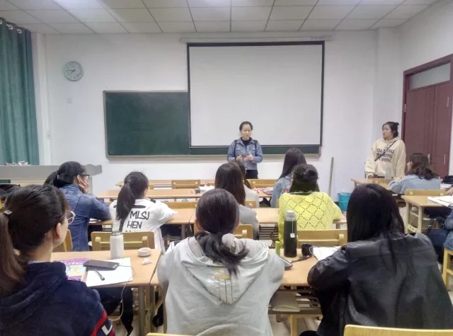 2014、2015级的四位同学,刘张美、刘淑君、杨景雯、韩佳楠亲自为2017级同学们讲解申请创新项目的重要事项及流程。