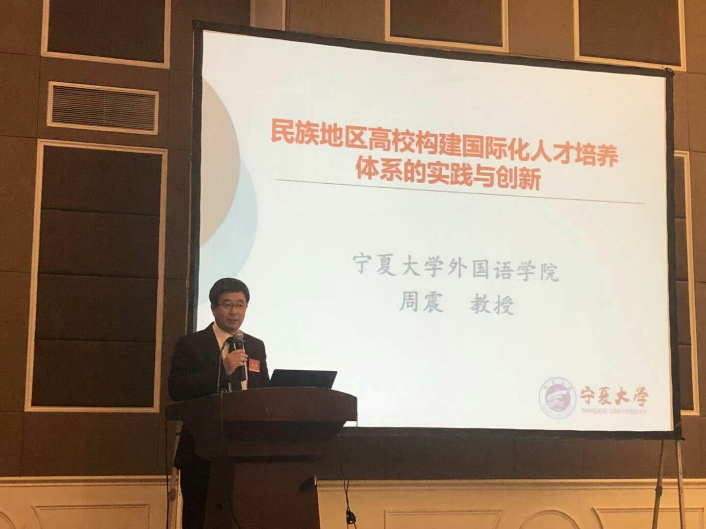 周震院长和其他来自全国的十一位知名专家学者应邀参加了高端论坛的“基于院校特色的国际人才培养”专题论坛并在论坛上作主旨发言。该论坛紧紧围绕国际人才培养,从课程体系设计,专业特色打造,学校国际合作等方面进行了专项研讨。论坛分上下两场,分别由北京外国语大学韩宝成教授和张剑教授主持。 周震院长以如何在区域高校构建国际化人才培养体系为主题探讨了宁夏高校近些年来所做出的实践与创新。分享了kk体育