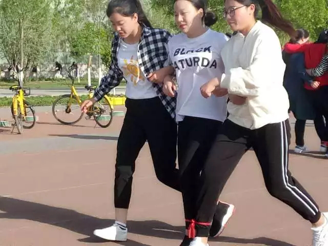 第三个活动便是重头戏——“三人四足”了。比赛开始,赛道上此起彼伏的是同学们“一二一二”的口号,以及小伙伴们的加油声。号子声、呐喊声和脚步声成为这个炎夏最动人的回响。