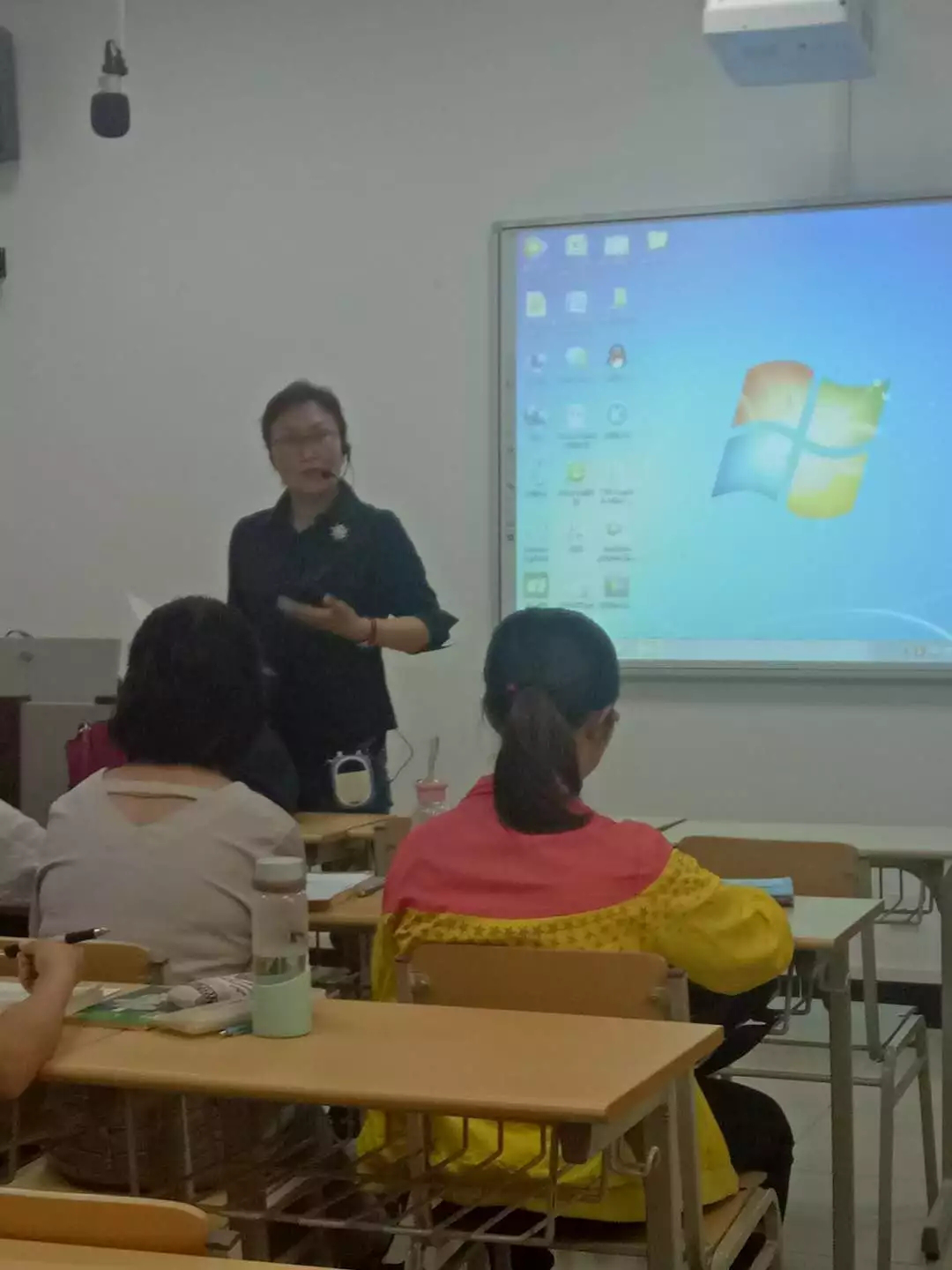 吴蓉老师所带的2015级英语专业《教学法》课程微格教学活动。在两节课的教学中,吴蓉老师安排了班里3名2015级本科生进行了微格教学的讲课实践。三个同学分别就初中英语里的课程内容以及阅读技巧进行了真实的课堂展示。从讲课环节来看,每个学生都能够按照任课教师所传授的教学法的知识以及课堂规范的要求,进行实践操作,讲课风格各具特色,但每个人也都有各自的不足和缺点。每个学生讲完,吴蓉老师都进行点评,并从教学法的角度给同学们提出中肯的建议,使同学们在进行教学实践的同时又补充了相应的理论知识。郭鸿雁教授对每个同学的讲课进行了耐心细致的点评,每个点评都风趣幽默,引来同学们的阵阵掌声和笑声,听得同学们频频点头。郭老师希望同学们在今后的学习中注重加强语言基本功的训练和教学方法的研究,为毕业后成为一名合格的教师做好充分的准备。