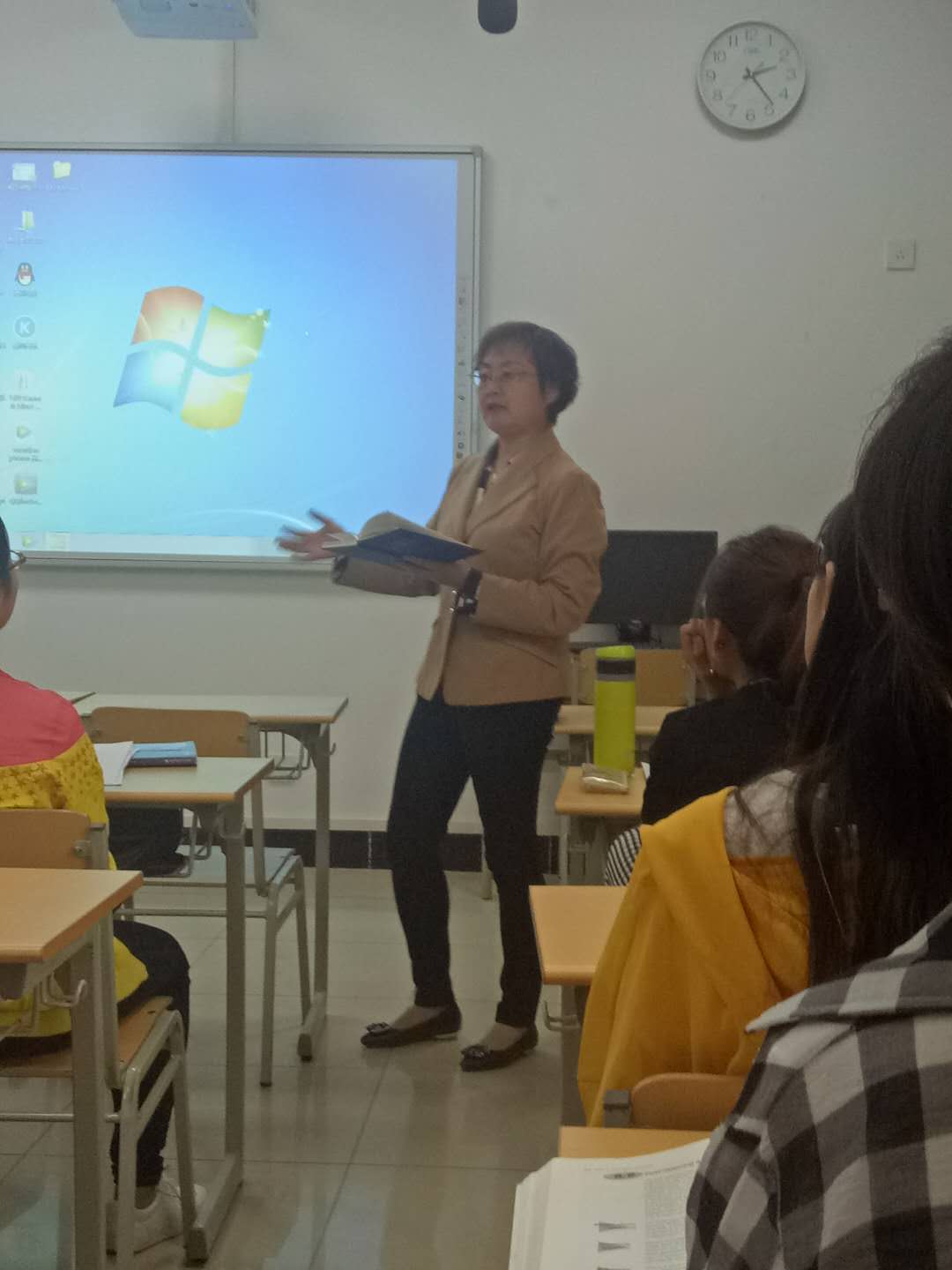 吴蓉老师所带的2015级英语专业《教学法》课程微格教学活动。在两节课的教学中,吴蓉老师安排了班里3名2015级本科生进行了微格教学的讲课实践。三个同学分别就初中英语里的课程内容以及阅读技巧进行了真实的课堂展示。从讲课环节来看,每个学生都能够按照任课教师所传授的教学法的知识以及课堂规范的要求,进行实践操作,讲课风格各具特色,但每个人也都有各自的不足和缺点。每个学生讲完,吴蓉老师都进行点评,并从教学法的角度给同学们提出中肯的建议,使同学们在教学实践的同时又补充了相应的理论知识。郭鸿雁教授对每个同学的讲课进行了耐心细致的点评,每个点评都妙语连珠、风趣幽默,引来同学们的阵阵掌声和笑声,听得同学们频频点头。郭老师希望同学们在今后的学习中注重加强语言基本功的训练和教学方法的研究,为毕业后成为一名合格的教师做好充分的准备。