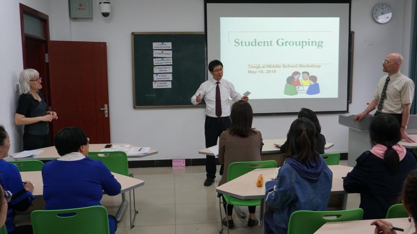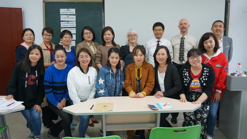 院长周震教授做了开班讲话,对唐徕中学的十四位英语教师参加培训表示欢迎,并介绍了外教Melissa Smith和Dale De Weerd,希望参训教师能够通过培训班的学习,一定程度上提升自身的教学方法和技能。