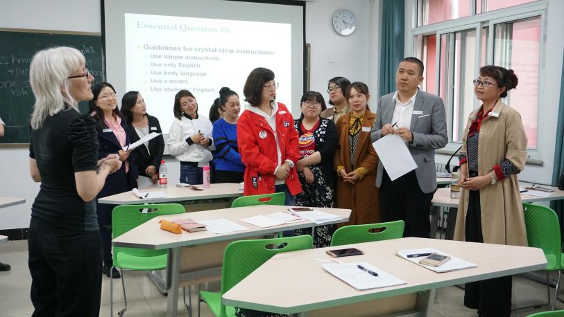 外籍教师Melissa Smith和Dale De Weerd应邀就“在英语课堂中如何进行分组活动”做了现场教学展示。