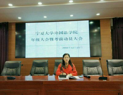 王朝老师总结回顾了2015级本学期的情况,并对同学们提出了以下几点要求,首先要学会承担责任,积极参加各项比赛,增强班级凝聚力,并且注意早晚自习的纪律问题,其次,要完整自己各项知识体系,并提高总结概括能力,扩大知识面,了解时事,为专四早做打算,最重要的是要注意寒假安全问题,提高警惕。在考试方面,要做到诚信考试 严禁作弊,考试临近,要认真安心复习。最后,王朝老师指出作为学生要做到尊师重道、尊敬师长,注意网络信息的传播。