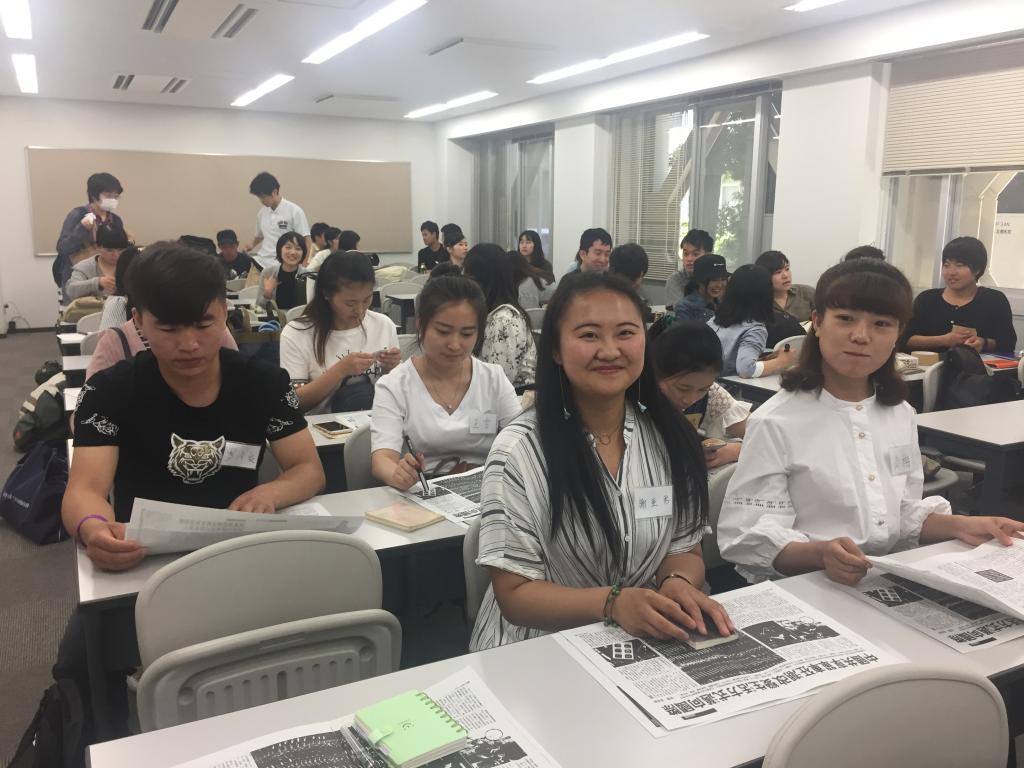 在日期间,学生们聆听了日本各大学的课程,并与日本大学生进行了交流互动。我校学生用日语,日本学生用中文,大家用所学语言进行交流,别有一番趣味。在大阪大学,学生们还参观了该校的社团活动,在榻榻米上亲自体验了日本的“百人一首”,充分领略到了日式社团的魅力。