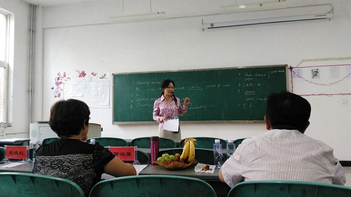 四位教师张燕萍、田莎、孟丽、金丽华脱颖而出,全部进入下午的决赛。决赛形式由10分钟的说课和5分钟的回答评委提问两个环节组成。说课材料由组委会现场提供,每位选手有30分钟准备时间,这是对教师英语专业能力、教学理念、课堂设计和综合素质的全面考核。