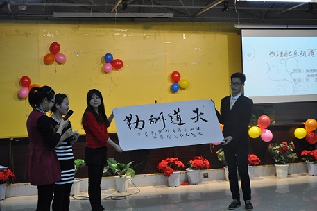 晚会在郭鸿雁老师的新年寄语中拉开帷幕。老师和同学们各展风采。王辉老师携乐队演唱了原创歌曲《那年冬天》及《那天》,将现场气氛点燃。随后,李文军老师朗诵并演唱了毛泽东的《六盘山》一诗,再次将现场气氛推向高潮。同学们的表演也不甘示弱,搞笑的小品、动听的歌曲、深情的朗诵、精彩串烧等表演形式多样,14级学姐们的舞蹈让全场观众大为赞叹,大一同学的小提琴独奏也让观众听得如痴如醉,刘正同学还挥笔洒墨现场写下毛笔字“天道酬勤”,鼓励同学们珍惜上研时光,努力付出。晚会期间还穿插了击鼓传花等游戏环节,在紧张欢快的音乐中,大家踊跃参与,聚精凝神,全身心投入到游戏环节之中。整场晚会在欢声笑语中渐进尾声。晚会最后,由贾文娟老师进行晚会总结,表达了对同学们的殷切希望,并宣布晚会圆满结束。