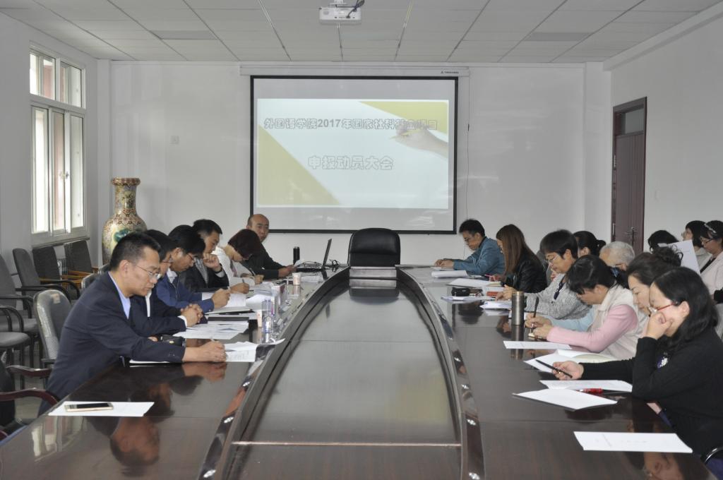其次,科技处李学斌处长作动员讲话。李处长在讲话中指出,在学校“十三五”开局之年,以及国家建设 “双一流”大学的背景下,做好国家社科基金项目申报工作,推动学院科研工作更高、更快发展,对于促进学校科技工作改革有重要意义。在肯定外国学院科研工作成绩的同时,李处长通过几组数据对比,指出了kk体育