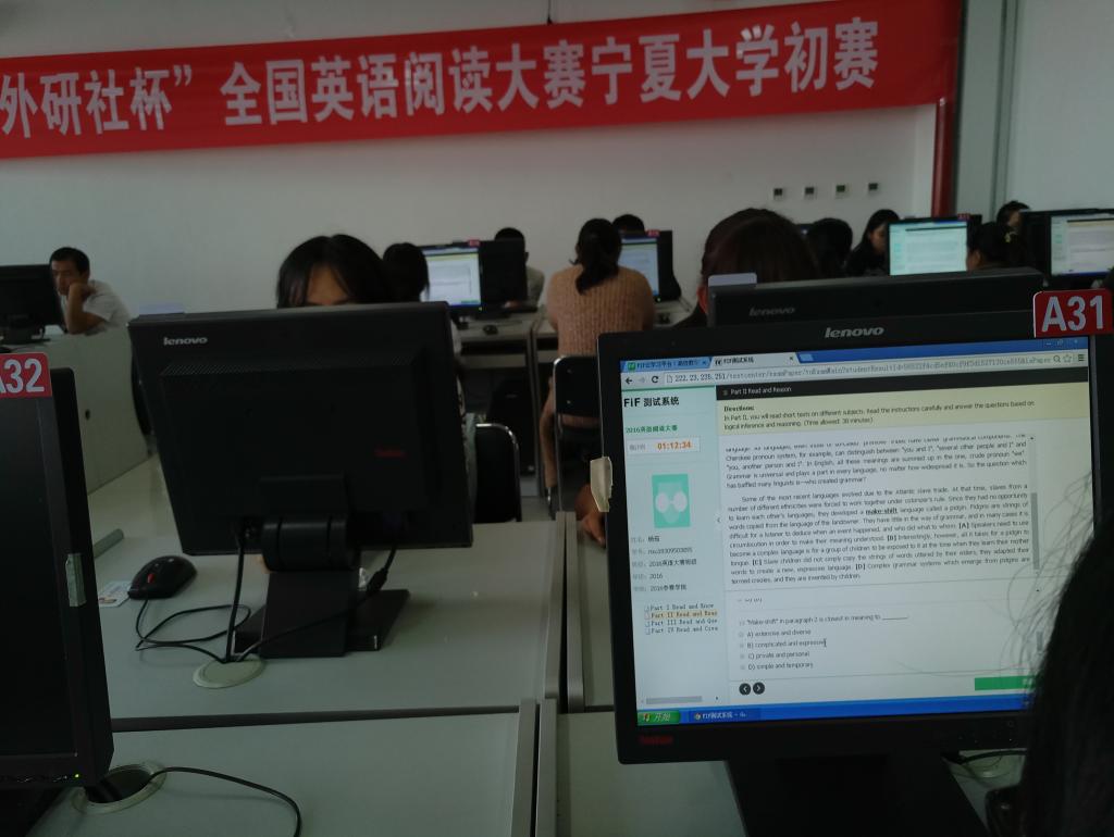 由自治区教育厅主办的“外研社杯”全国英语阅读大赛宁夏赛区复赛、“外研社杯”全国英语写作大赛宁夏赛区复赛。在全区复赛之前,kk体育