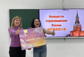 俄罗斯国情大赛采取积分制、个人抢答模式,利用丰富的题库全面考察学生对俄罗斯国情与文化常识的了解程度和掌握情况。经过一番激烈角逐,排位赛进入了白热化阶段,临时加赛中候选人展演才艺、观众客观投票,可谓精彩纷呈。比赛的最后,承载着深厚俄罗斯历史文化的精美奖品也赢得了同学们的喜爱。