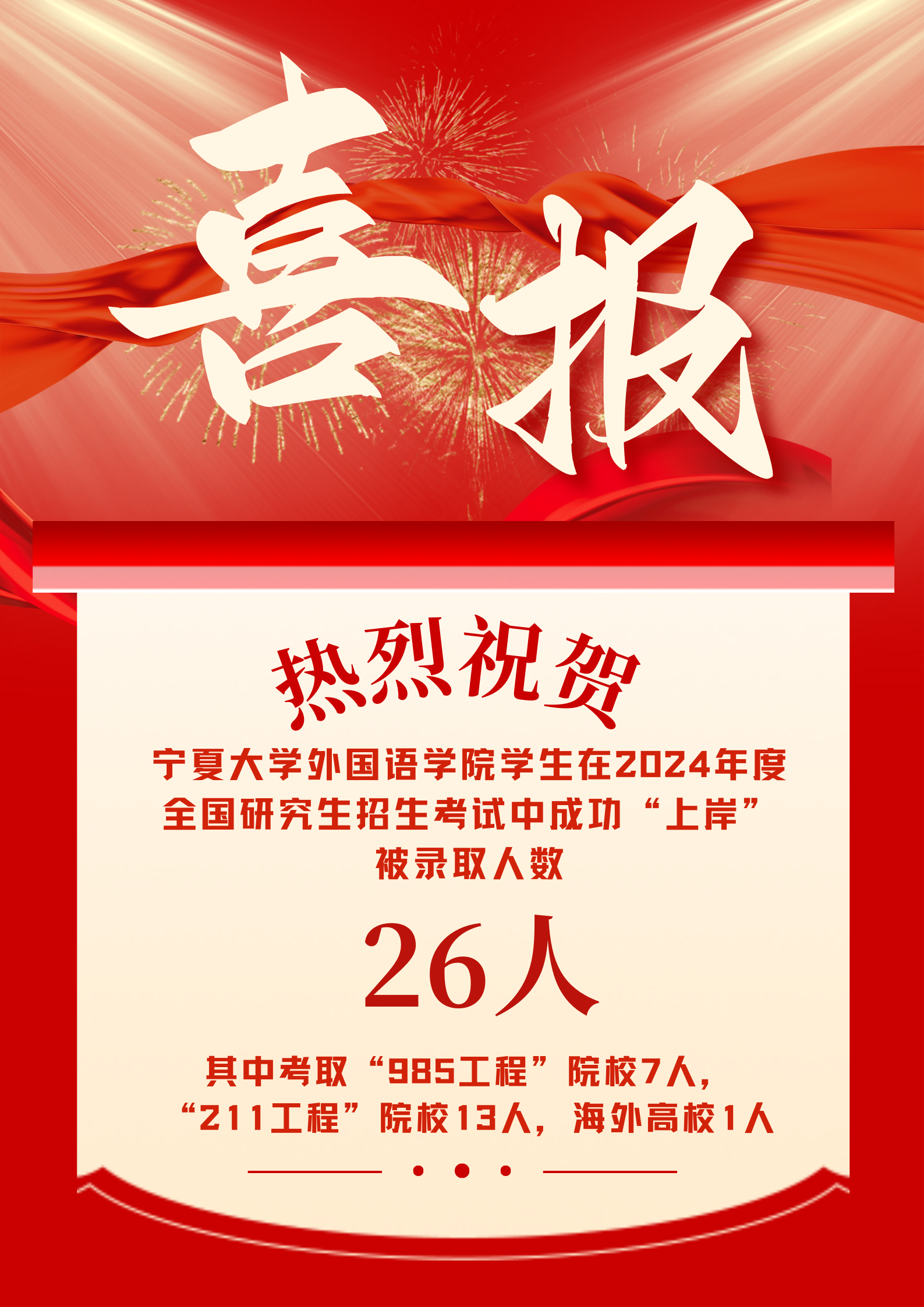 热烈祝贺kk体育 2024届毕业生考研升学突破新高!人数、专业及院校排名均为新高!