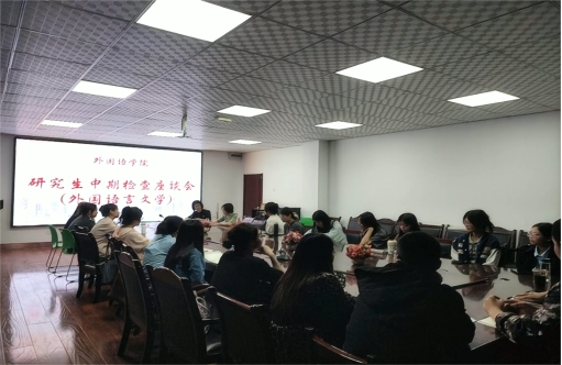 在逸夫楼309会议室举行学术型研究生期中教学检查座谈会。会议由学院副院长胡笑瑛主持,工作组刘颖老师、2022级、2023级全体学术型研究生参加了座谈会。