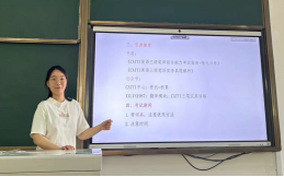 2023级翻译硕士口译方向研究生马红瑞为大家分享了专八和教资的备考经验。马红瑞向同学们强调了专业八级考试的重要性,她鼓励同学们树立积极的学习态度,做到早规划、早准备。同时,她也举例讲解了教资面试过程中的课堂导入环节,建议同学们面试前一定要与其他备考同学共同训练模拟,以增强临场发挥和应变能力。