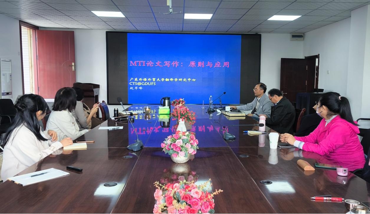 邀请广东外语外贸大学赵军峰教授开展了题为“MTI论文写作:原则与应用”的专题讲座。本次讲座由学院党总支书记朱海燕主持,kk体育