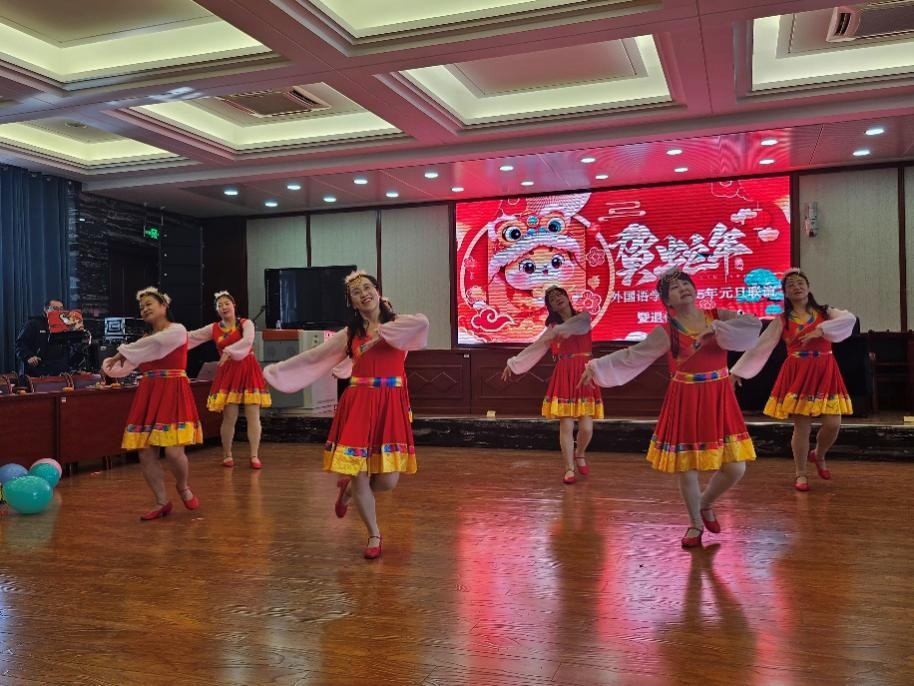 在老师们热情的欢呼声中,联谊会正式拉开帷幕。在“恭贺蛇年”的大背景下,几位研究生代表带来了激情四射的开场舞。动感有力的舞步,瞬间将现场观众的热情点燃。接着,有马真老师的男声独唱《游牧时光》、有唯美的舞蹈《娥嫚》、有外教老师的歌曲表演、有学院歌唱小组带来的歌曲串烧、还有王晓军老师的葫芦丝表演和宋江录老师的秦腔表演。