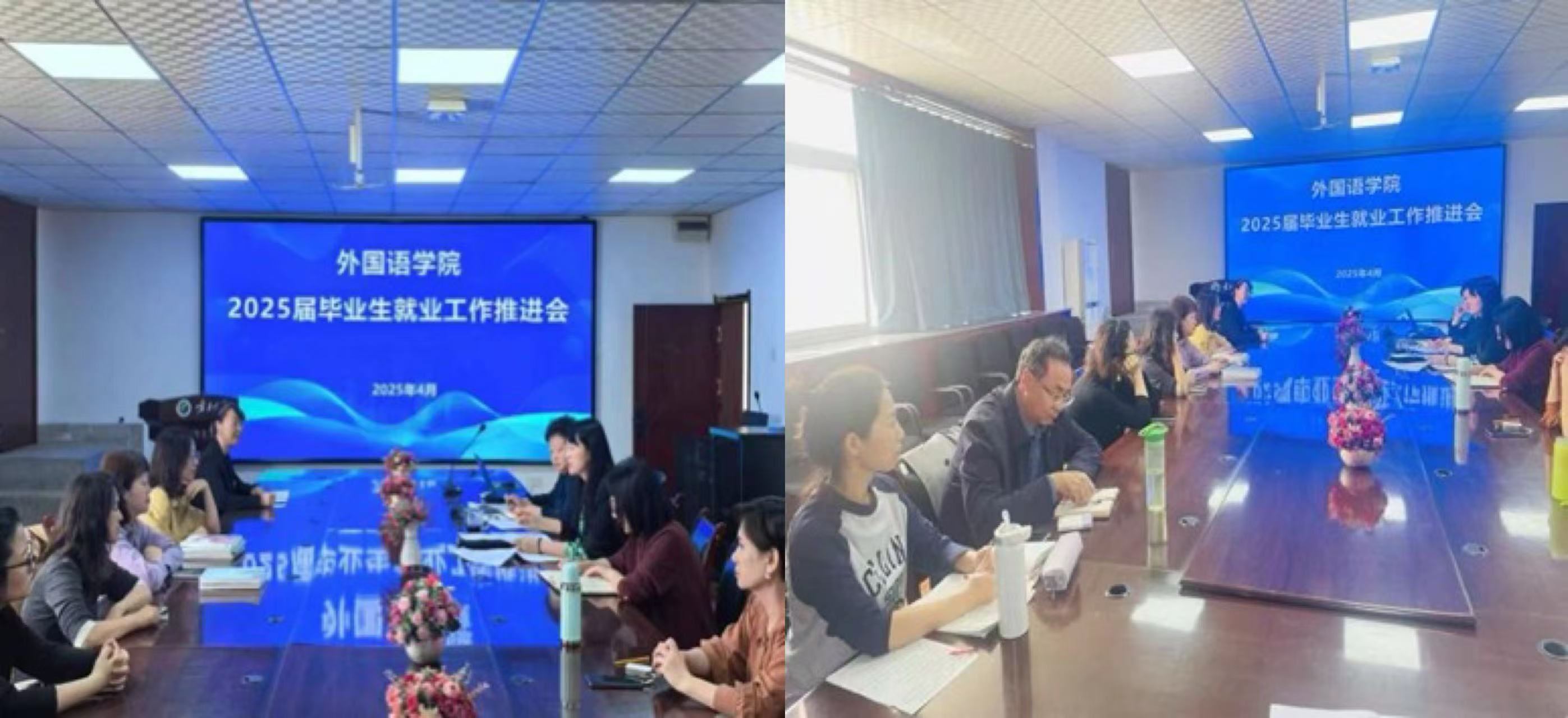会议开始,朱海燕书记就2025届外院本科毕业生和研究生毕业生就业情况做了简明扼要的说明,要求学院领导班子成员和班主任把毕业生就业工作抓好抓实抓细。要求班主任和论文指导老师在升学和就业方面主动对接毕业生,主动给予建议和指导。随后,各位班主任老师根据已掌握的最新就业数据汇报了每个毕业生的情况,并明确了“一学生一方案”的努力方向。