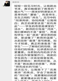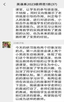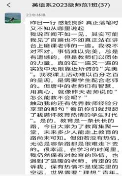 在优秀教师经验分享环节,宝湖校区张主任介绍了英语组的教学理念、传统、创新及共享合作精神;获得优秀教师代表的发言诚挚动人,让师范生看到精益求精、勇于创新与爱岗敬业、乐于奉献的教育精神在新老结合、互帮互助、合作共赢的模式中被一代又一代的英语教师发扬光大。