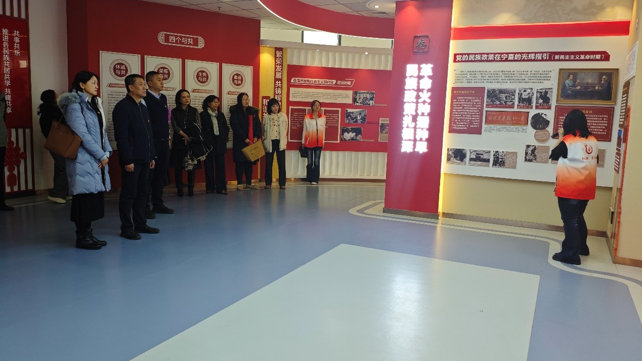 接着,党员们走进“铸牢中华民族共同体意识”教育基地。讲解员以“铸牢中华民族共同体意识是新时代党的民族工作的主线,也是民族地区各项工作的主线”为主题,通过丰富的图文资料、生动的案例讲解,系统阐述了中华民族共同体意识的核心内涵与实践要求。大家在参观学习中深刻认识到:铸牢中华民族共同体意识是高校立德树人的重要任务,更是推动民族地区教育事业高质量发展的根本遵循。