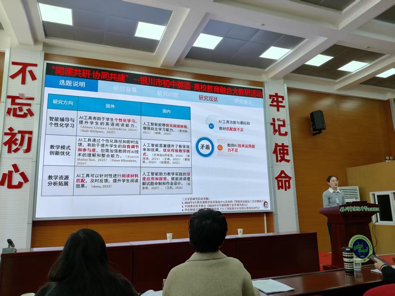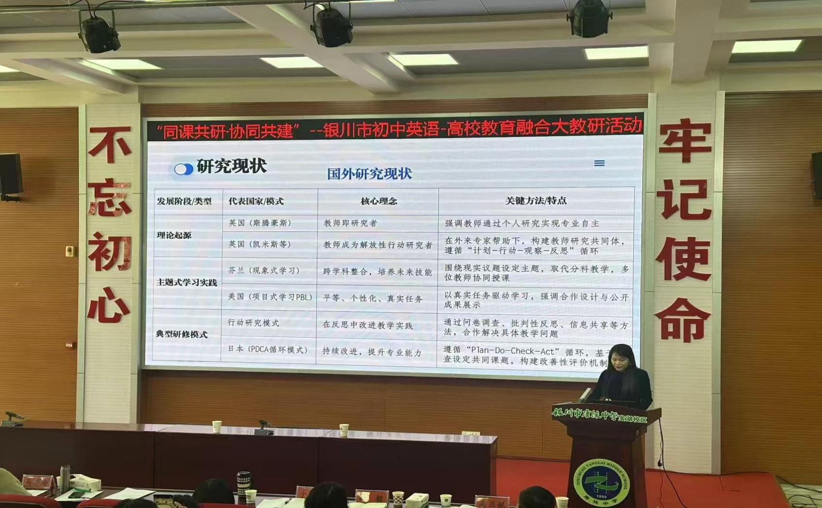 协办、银川市唐徕中学宝湖校区承办的“同课共研·协同共建:中学—高校英语教育融合教研活动”于11月19日下午在唐徕中学宝湖校区隆重举行。