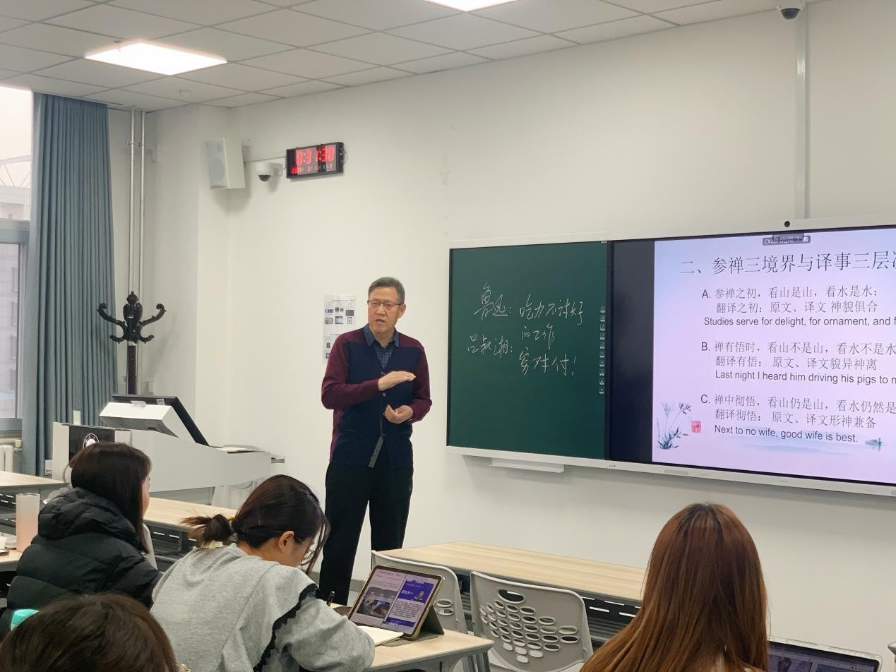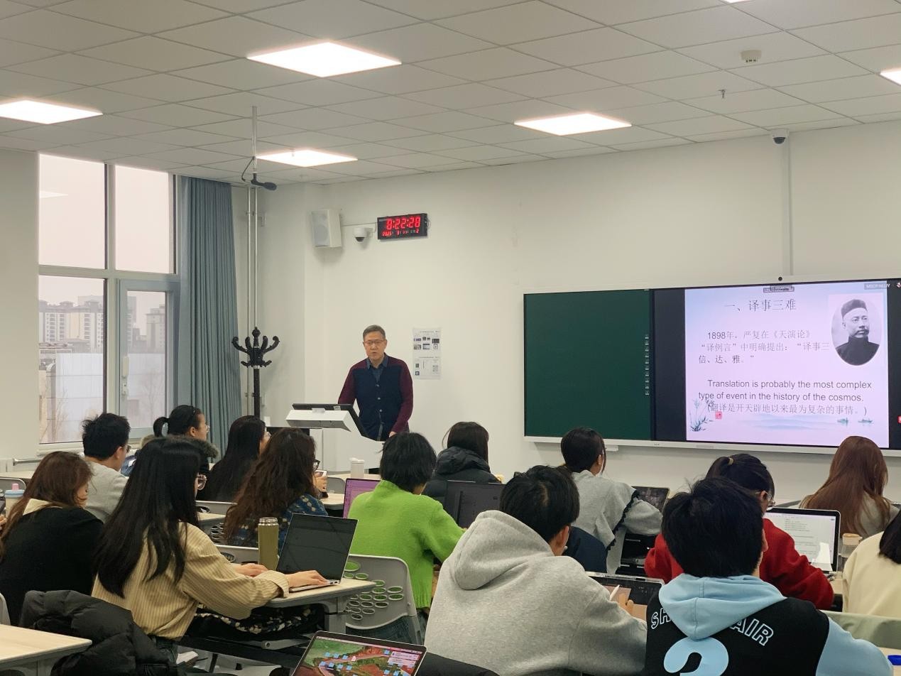 3月11日上午8点,宁夏翻译协会名誉会长、宁夏高等外语教学研究会名誉会长周玉忠教授应邀为kk体育 师生带来了一场题为“翻译‘三维说’”的学术讲座。此次讲座由学院副院长胡笑瑛教授主持。