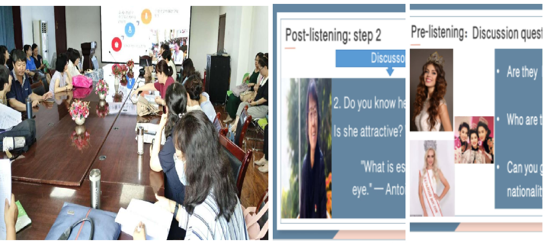 吴蓉老师以《英语课程与教学论》中Teaching Listening一章为教学内容,以现场模拟授课的方式引导学生习得、内化听力教学方法。模拟授课以“美的本质”为主题,选取关于“选美比赛”的听力材料,用问题、图片、音频设置真实情境贯穿于问题导向式的听力技能训练中,听后以选美比赛选手和知名教育家张桂梅的形象形成对照,探讨“美”的价值,引用《小王子》中“本质的东西用眼睛是看不见的”这一名言升华主题,让师生亲身体会听力教学课堂,深入思考听力教学方法和课堂互动的实际运用。本节课教学方法创新,案例选择独具匠心,思政教育有机融入。