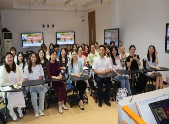 最后,张燕萍老师分享了2024年6月中旬英语系组织的首次师范生研学活动。本次研学的目的地为师德师风优良、实力雄厚、英语师范人才培养成果显著的湖南师范大学。2023级共20名师范生和刘燕、张燕萍、马爽三位带队老师参加了此次为期一周的研学活动。张老师回顾了学生走进名师课堂(英语语音、西方文化概论),同全国师范生技能大赛获奖选手、湖南师范大学公费师范生的交流情况,也分享了学生与湖师大学生和英国基尔大学学生一同前往橘子洲和岳麓书院考察的过程和收获。张老师指出,在本次研学中,同学们不仅有“行中课”,更感受到了“行前课”和“行后课”的重要性;20名大一师范生通过集体旅行、学习交流和研讨,拓宽了视野,增长了知识,丰富了体验,提升了能力。